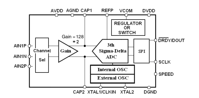 24位ADC-SDI0809是一款24位无失码的高分辨率模数转换器(ADC),采用3阶Sigma-Delta结构,内部集成128倍增益,可方便的应用到各类微弱信号测量系统中,如:电子秤、数字压力传感器、血压计等。