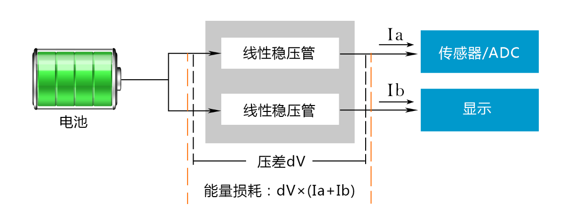 ● 线性稳压方式存在较大的能量损耗,高达30%