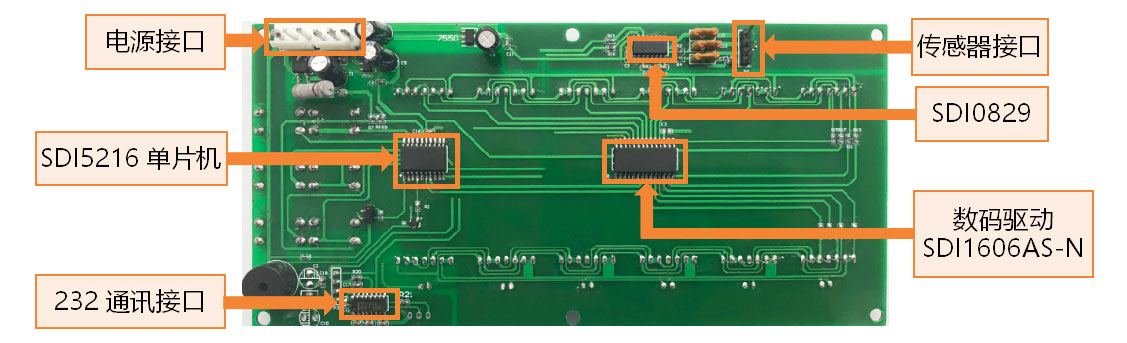 本方案将主板、显示和键盘集成到一块板子上,采用SDI0829+SDI5216。SDI0829是一款24位ADC,能够抵抗射频干扰,用于工业现场和对抗干扰要求较高的场所。