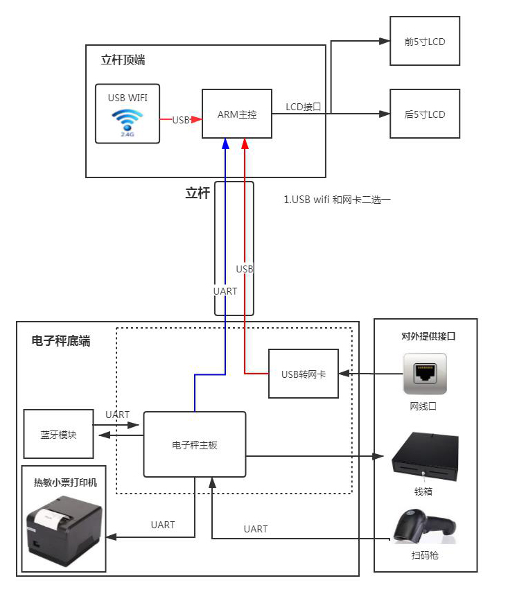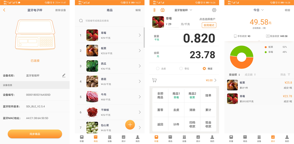 本智能收银秤方案采用32位MCU,24位高精度ADC—SDI0809X1,支持热敏小票/条码打印机、钱箱、网卡、WIFI、蓝牙BLE和串口扫码枪。收银秤可以通过蓝牙连接APP实现设备管理、商品管理、销售统计、打印机格式设置等功能。
